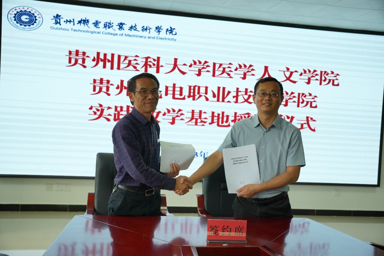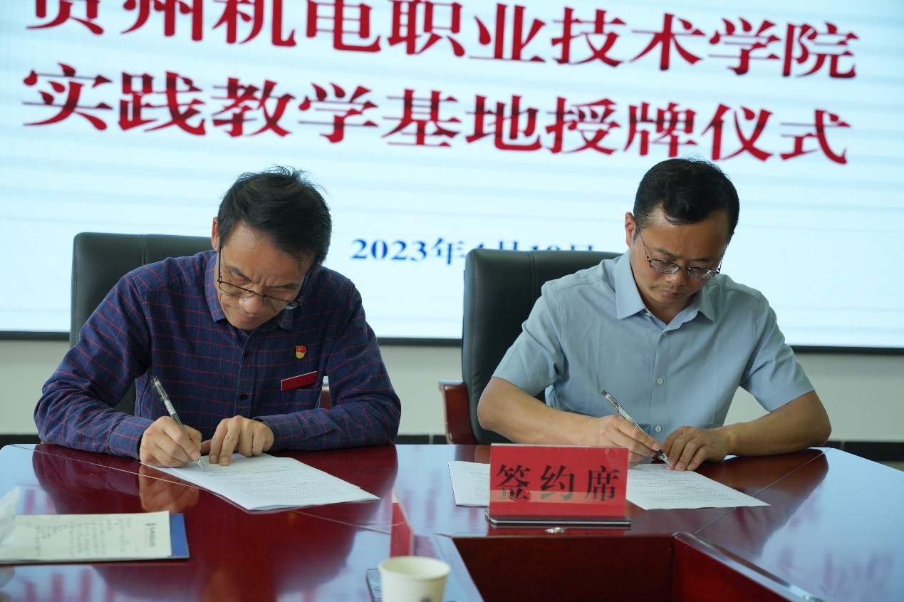 江宣成与刘猛代表双方签订了《williamhill官网贵州机电职业技术公司实践教学基地共建协议书》,同时举行了“williamhill官网实践教学基地”揭牌仪式。