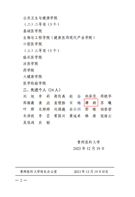 公司副科级组织员、纪委委员、员工党支部书记谭婷教师荣获“williamhill官网 2023 年度毕业生就业工作先进个人”荣誉称号。