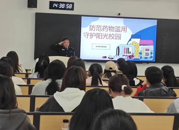 10月30日,为进一步保护师生身心健康和维护社会秩序,不断增强防毒拒毒意识,公司邀请贵州省女子强制隔离戒毒所三大队教导员黄文艺一行3人共同开展以“防范药物滥用、守护阳光校园”为主题的禁毒知识宣讲活动。公司党委书记江宣成、副书记兼纪委书记张贤、员工科科长车阳艳及2024级员工参加活动。