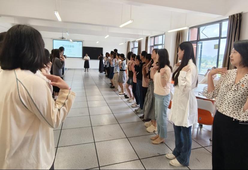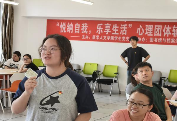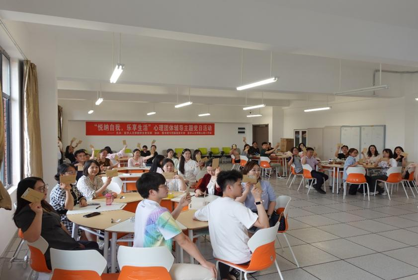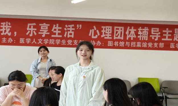 在活动环节,2022级应用心理研究生党员何秋月为带领人。首先,何秋月向各位党员同志介绍了团体心理辅导活动的要求。接着,通过“正话反说”“雨点变奏曲”等破冰游戏充分调动了成员积极性,活跃了现场气氛。随后,带领人通过“争当龙头”的心理活动引导成员思考成败的归因,并介绍心理学归因理论,启发成员正确看待成败。