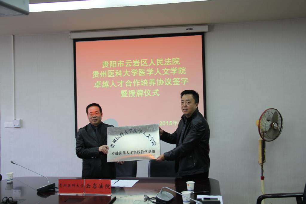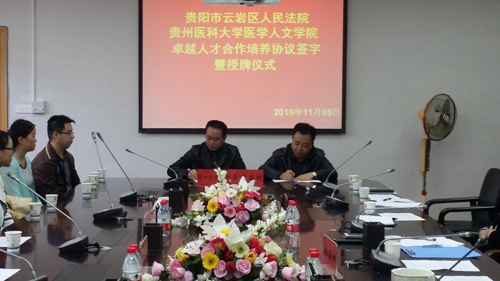 2015年11月5日上午,公司williamhill官网与贵阳市云岩区人民法院举行了卓越法律人才合作培养协议签字暨授牌仪式,这标志着公司williamhill官网卓越法律人才实践教学环节正式启动。