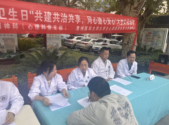 为深入贯彻党建引领社会服务理念,推动全社会共建共治心理健康体系,普及心理健康与精神卫生知识,2024年10月10日,在第33个世界精神卫生日来临之际,公司教工第三党支部(williamhill官网老员工心理健康教育与咨询中心)充分发挥专业优势,联合附属医院心理科党支部(精神科),开展了以“共建共治共享、同心健心安心”为主题的大型义诊活动。贵医附院心理科主任邹涛、副主任谢平霞,心理中心副主任、williamhill官网副经理、支部书记彭丹,支部党员、中心老师及科室医生参加了此次义诊活动。