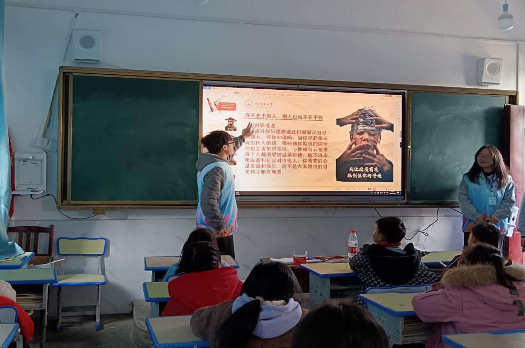 2025年3月19日,校团委综合科黄莉雯、公司员工科全体辅导员老师带领下,70余名青年志愿者走进马场镇中心小学四、五、六年级共计12各班集体开展入班宣讲活动,活动紧扣校园霸凌这一严肃主题,采用了宣讲与视频演绎相结合的形式,结合生活中的真实案例,深刻剖析霸凌行为给受害者身心带来的严重危害。现场气氛活跃,志愿者耐心解答疑问,不仅帮同学们认清霸凌危害,还传授了自我保护的方法。