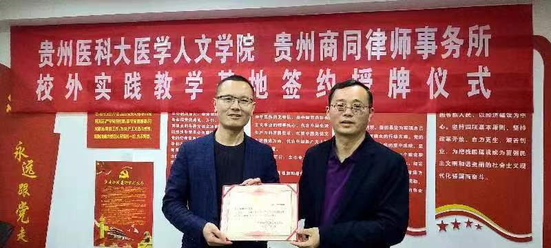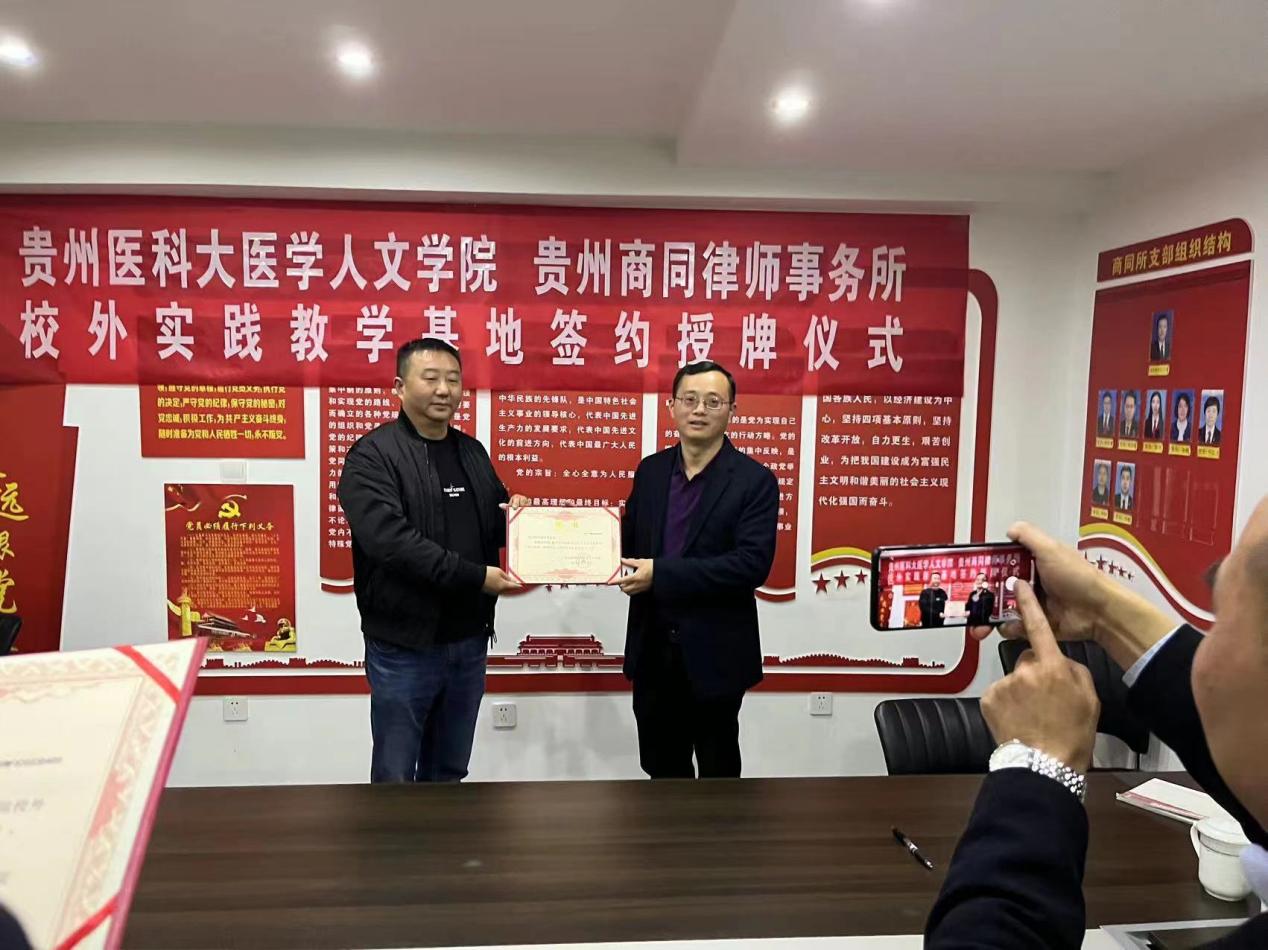 江宣成与冉政林签署了全面合作框架协议、共建实践教学基地协议,并向贵州商同律师事务所授牌williamhill官网实践教学基地,并向受聘校外实践指导教师颁发证书。
