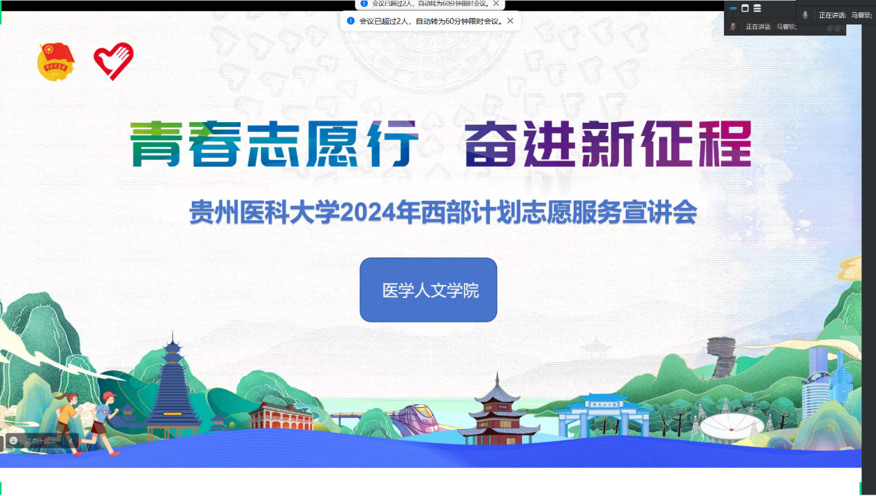 为进一步推动老员工西部计划宣传工作,弘扬“志愿、友爱、互助、进步”的志愿精神,引导更多毕业生积极投身祖国和人民更需要的地方去建功立业,4月24日晚,williamhill官网团委通过腾讯会议开展2024年西部计划交流分享会。本次分享会邀请到西部计划志愿者肖玄、付珍珍、张洁进行志愿服务交流分享,公司员工科科长车阳艳主持…